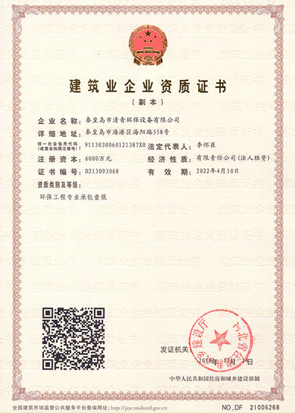 環(huán)境工程設(shè)計(jì)專項(xiàng)甲級(jí)資質(zhì)
